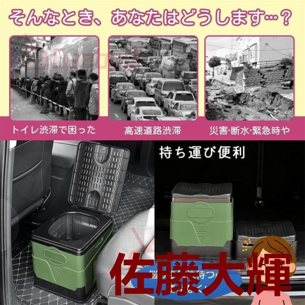 このトイレは折りたたみ式のデザインで、携帯用のハンドルが付いており、持ち運びが非常に便利です。アウトドアでキャンプや旅行、または車内で使用する場合でも、トイレの問題を簡単に解決できます、特に緊急災害や停電の場合でも。