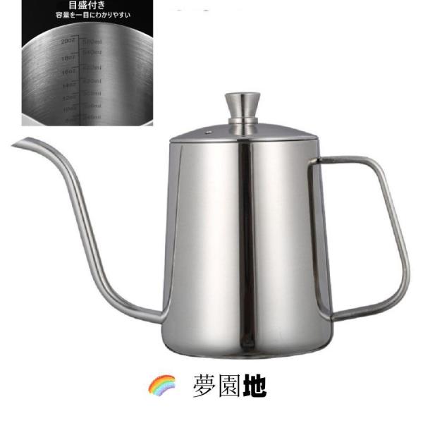 新!コーヒードリップポット直火 目盛付き 600ml ステンレス 細口 ポット コーヒーポット 約3杯分 コーヒー グッズ ケトルコーヒーケトル