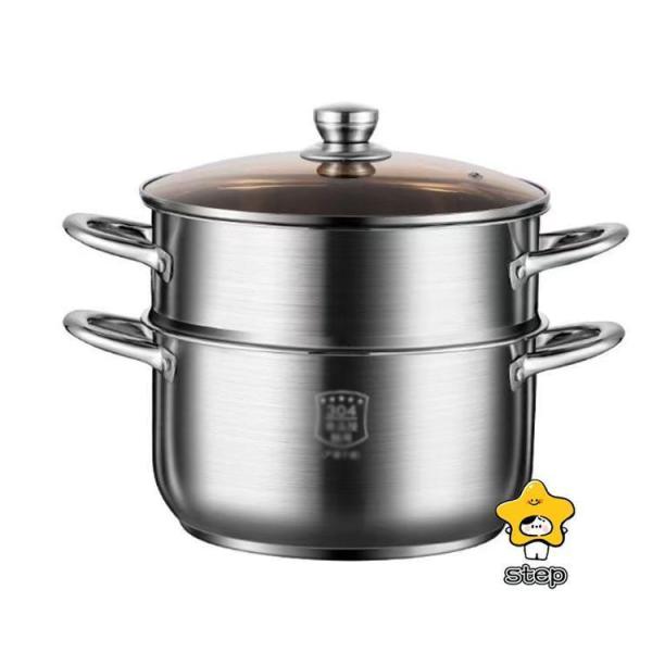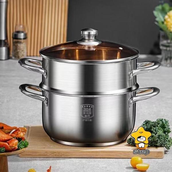 蒸籠 IH対応 ステンレス製 ガラス蓋付 調理鍋 両手鍋 蒸し器 2段 蒸し鍋 蒸し料理 直径24cm/26cm 多機能 鍋 深型鍋 直径24cm/2