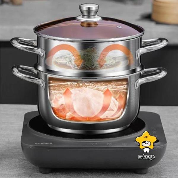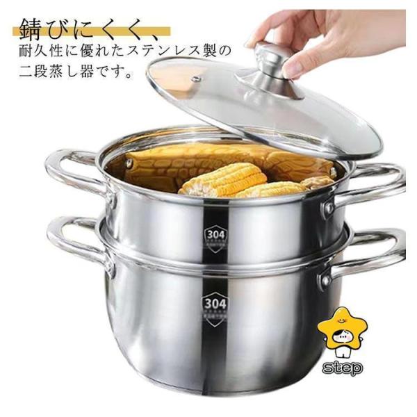 蒸籠 IH対応 ステンレス製 ガラス蓋付 調理鍋 両手鍋 蒸し器 2段