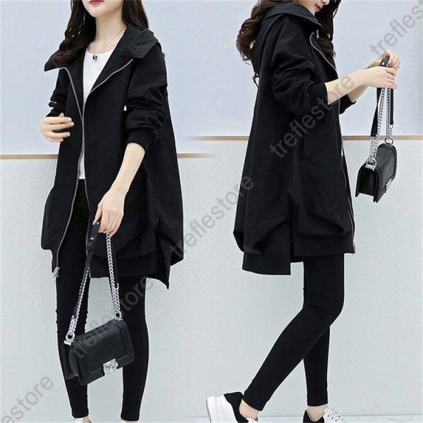 【キーワード】ウィンドブレーカー 体型カバー ジップアップパーカー 着痩せ ゆったり 秋服 ウィンドブレーカー マウンテンパーカー レディース 春秋 ジップアップパーカー シルエット ロング丈