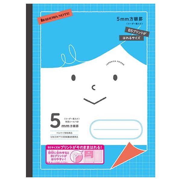 【5冊までメール便OK】 ショウワノート ジャポニカフレンド 学習帳 プリント貼付用 B5ノビ判 5mm方眼罫 リーダー罫入り 科目シールつき [ブルー] MFP-5B