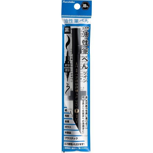 【20本までメール便OK】 呉竹 くれ竹 油性筆ぺん [軟筆/硬筆 ツインタイプ・黒] TSA-010S ツインタイプ 両用 油性 筆ペン