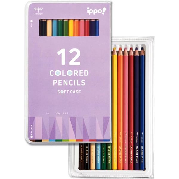 【2点までメール便OK】 トンボ鉛筆 ippo! ソフトケース入り色鉛筆 12色 [ケース:パープル] いろえんぴつ 新入学祝い 女の子 小学生 新学期 CY-KB0112C