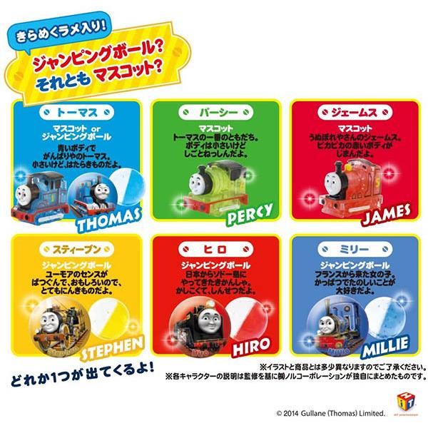 マスコット(トーマス、パーシー、ジェームス) ジャンピングボール(トーマス、スティーブン、ヒロ、ミリー) 全7種のいずれか1個が入ってます。