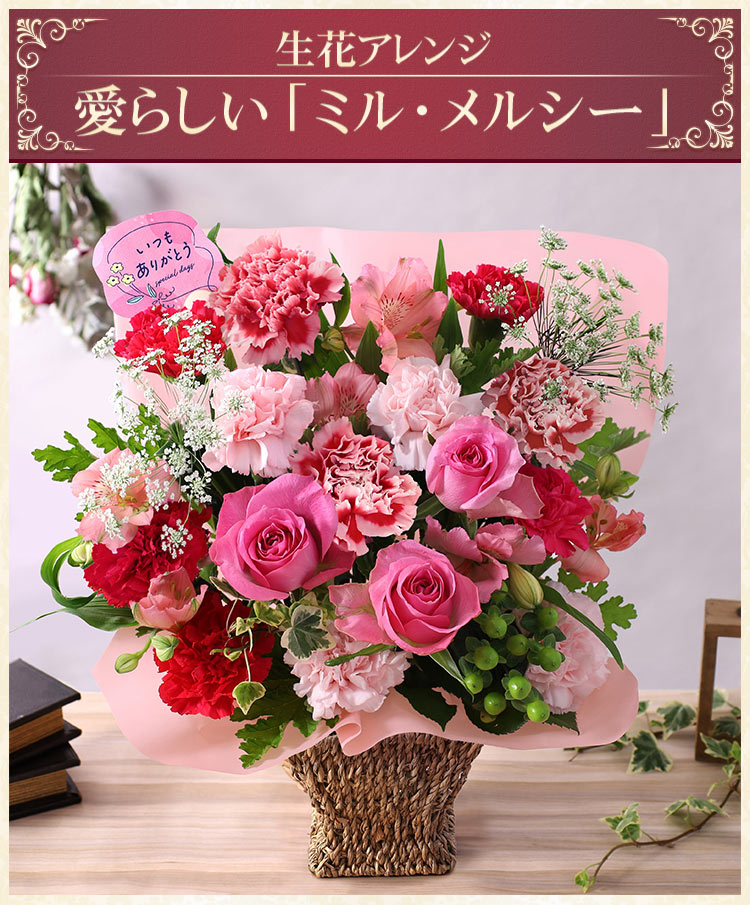 早割実施中! 母の日 2026 ギフト 花 プレゼント 生花アレンジ 愛らしい「ミル・メルシー」 アレンジメント フラワー 送料無料 イベントギフト ポイント利用