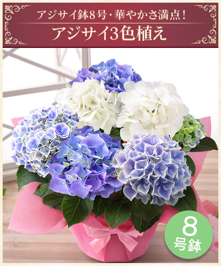 早割実施中! 母の日 2026 ギフト 花 プレゼント 鉢植え アジサイ鉢8号 華やかさ満点! 「アジサイ3色植え」 大きい 鉢花 花鉢 イベントギフト ポイント利用
