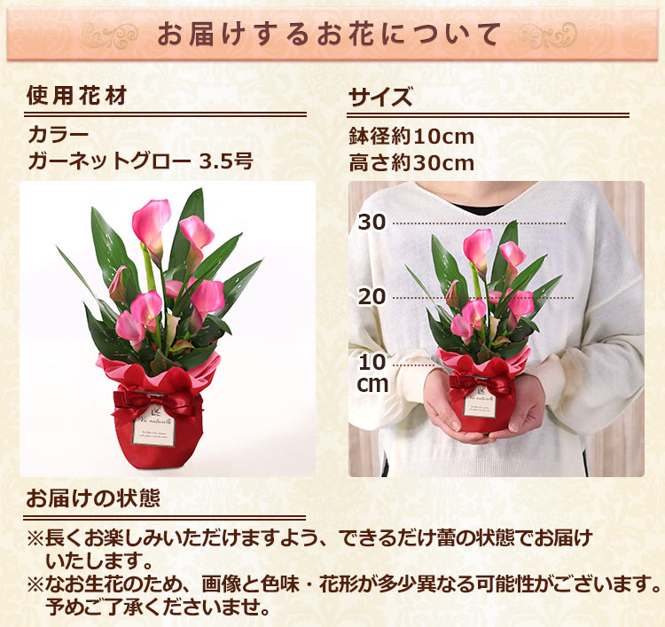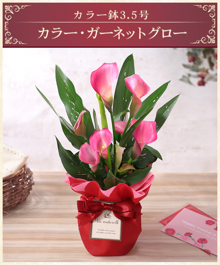 早割実施中! 母の日 2026 ギフト 花 プレゼント カラー鉢3.5号「カラー・ガーネットグロー」 鉢植え イベントギフト ポイント利用