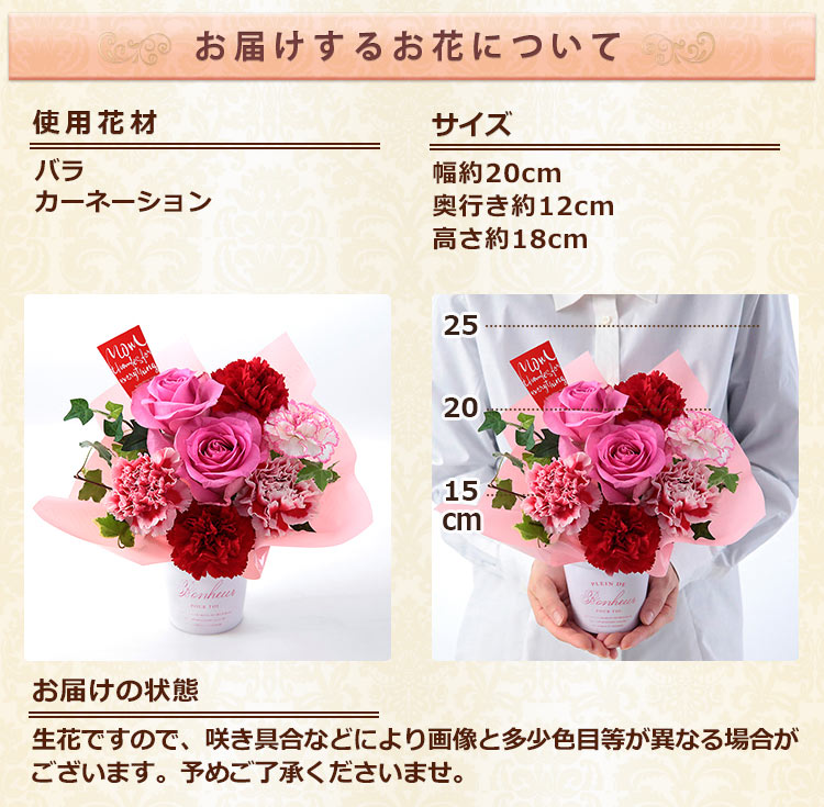 最短翌日届け 14時まで 花 誕生日プレゼント フラワーアレンジメント おまかせアレンジ プリュム 春 バラ ガーベラ ギフト 生花
