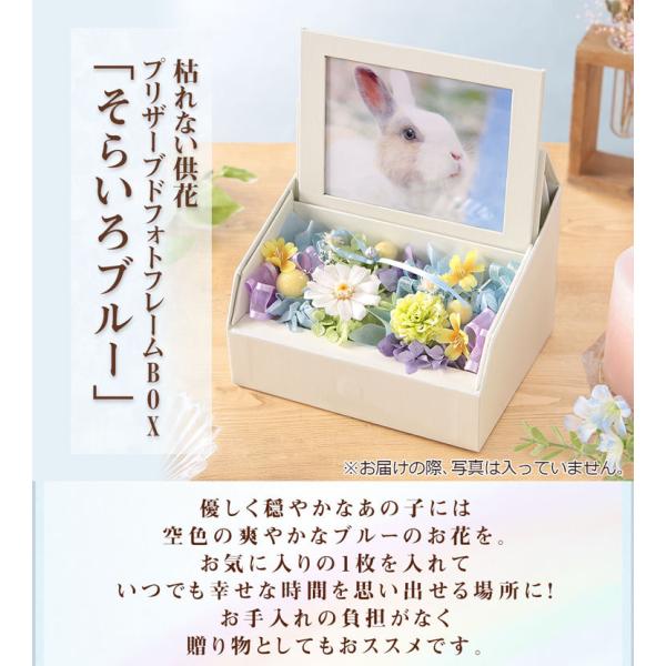 最短翌日届け 14時まで 花 ペット お悔やみ 供養 枯れない供花 プリザーブドフォトフレームBOX 虹の橋 命日 誕生日 ギフト プレゼント お盆 お供え 仏花