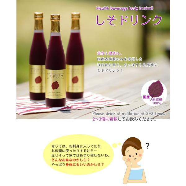 国産しそドリンク(2〜3倍濃縮タイプ) く国産の赤紫蘇を100%使用した、ほのかに甘く、さっぱりした風味。美容と健康に。 (fy3)