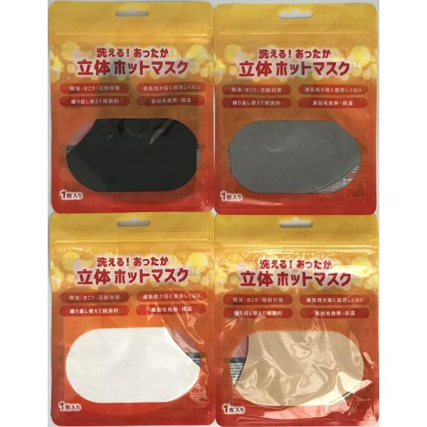 立体ホットマスク 大人用 1枚入 あったか 洗える 裏起毛 ブラック・グレー・ベージュ・ホワイト 冬用 あったかい 温感 発熱 保温 飛沫 花粉 通気性