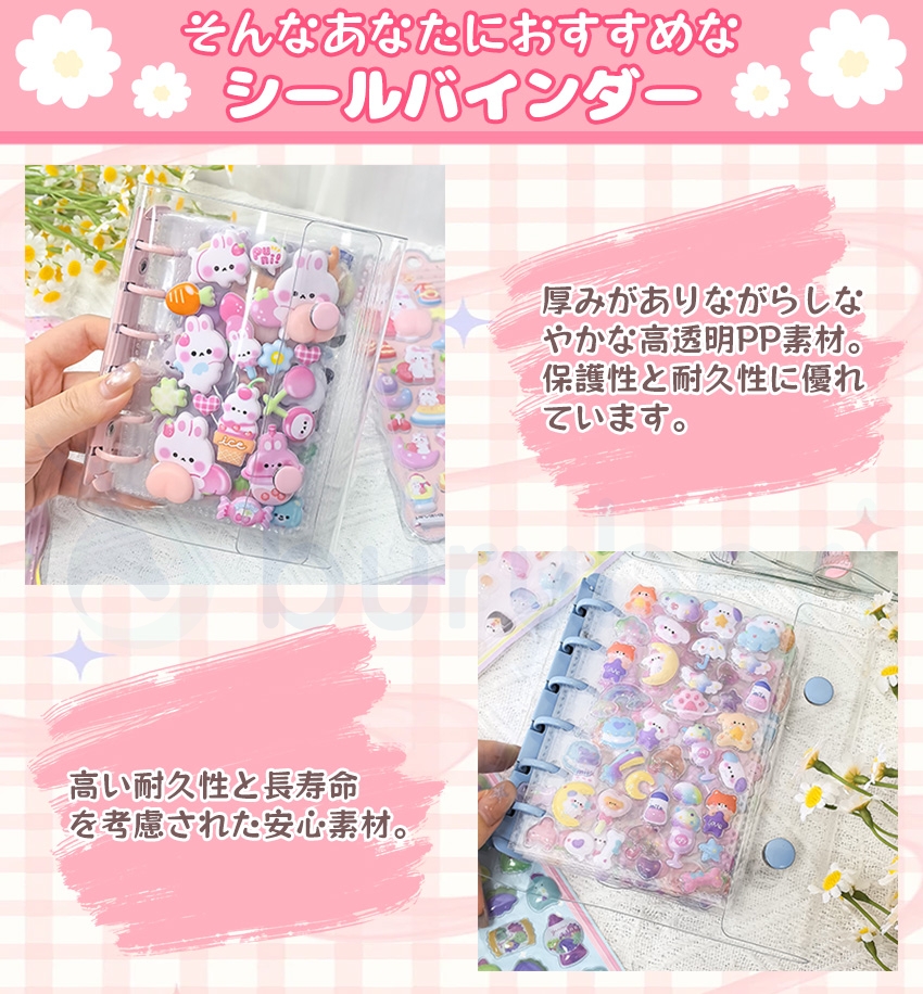 【A5サイズ2026最新タイプ】 シール帳 A5 バインダー シール帳 大きめ シール帳カバー 透明 ぷくぷく クリア A5 台紙 リフィル 6穴 可愛い バインダー クリ