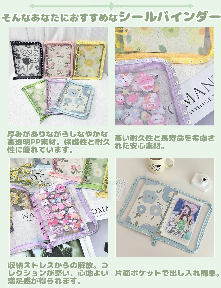 シール帳 A6 バインダー シール帳カバー PVCカバー 透明