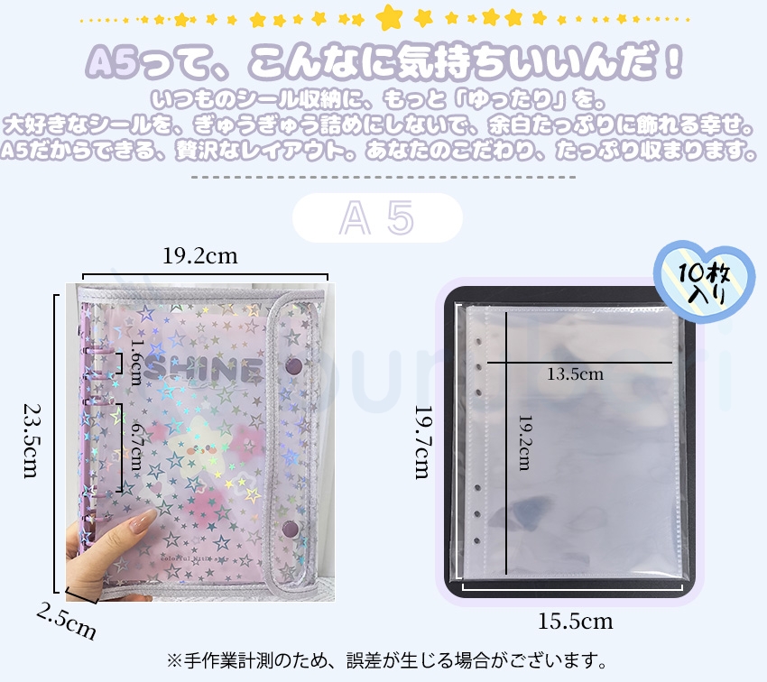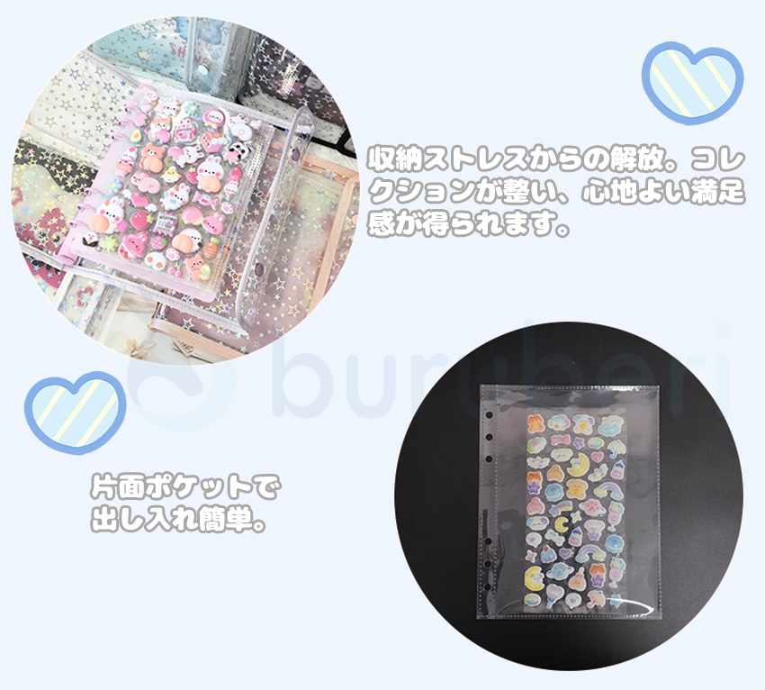 【ついに出たA6/A5サイズ!】 シール帳 A6 バインダー シール帳カバー PVCカバー リフィル 透明 ぷくぷく クリア 台紙 リフィル 6穴 可愛い キラキラ輝く