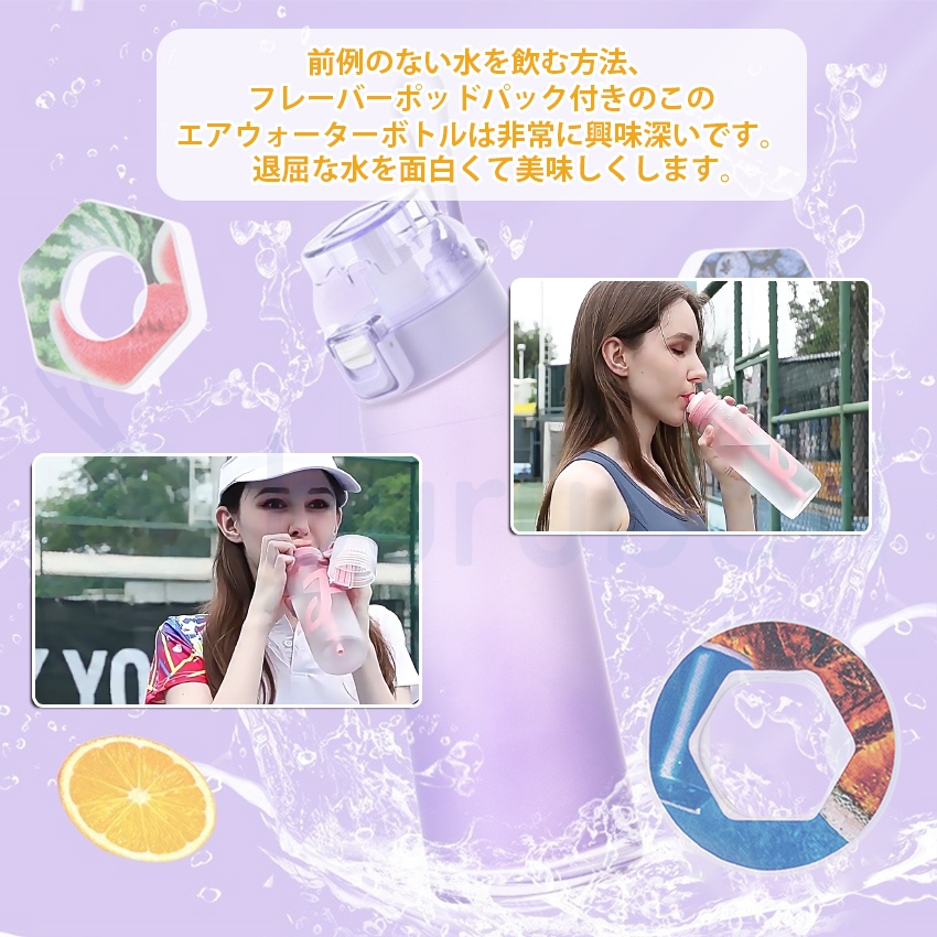 ■糖質0&カロリー0:このフルーティーなフレグランスウォーターボトルエアボトルには、BPAフリーの食品グレードの素材で作られたフレーバーポッドが付いています。天然のフレーバーは、砂糖や追加の化学物質を心配することなく、フルーツやシロップから抽出されており、毒性はありません。無害です。砂糖不使用、カロリーゼロなので健康的な飲み物に最適です。