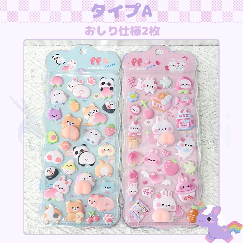 【当店限定合計6種類】 おしりシール ぷにぷに 3Dシール お尻 3dシール お尻3Dシール ぷくぷくシール ぷっくり 飾り 可愛い かわいい 手作り 貼り付け 3D 立体