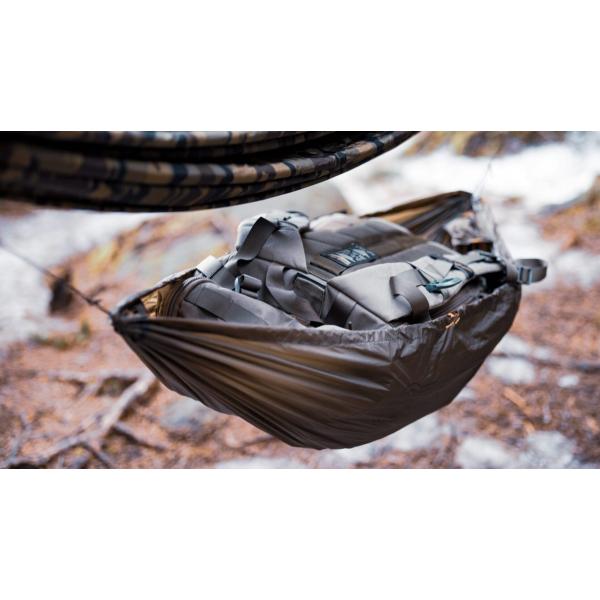 B-COVER Gear Sling XLは、超軽量なミニハンモック(ギアスリング)であると同時にレインカバーとしても機能します。