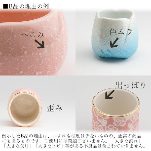 「へこみ」「出っぱり」「色ムラ」「歪み」「わずかな割れ」「わずかな欠け」「わずかなヒビ」他、一点ずつ、B品になった理由は違います。
