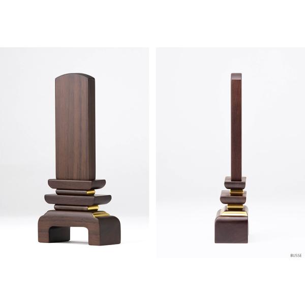 深みのある濃い褐色が特徴のウォールナット材を使用しています。札板や台座は、金粉で縁どりが施されています。