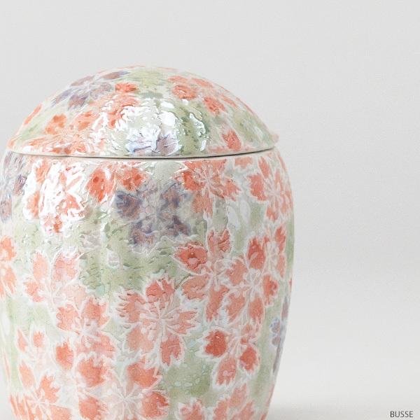 可愛い花柄をあしらった有田焼のミニ骨壷です。