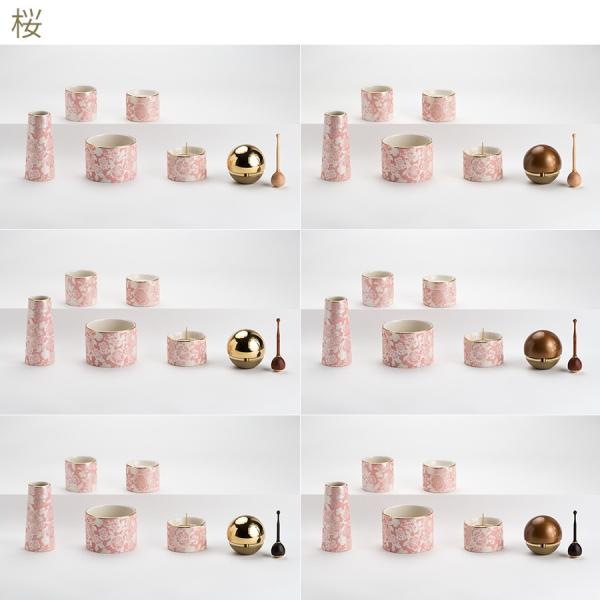 仏具 セット やわらぎ さくら 中サイズ 7点 /仏具セットミニ モダン 手元供養仏具 おしゃれ仏具 日本製 国産 陶器製 3.0寸 桜