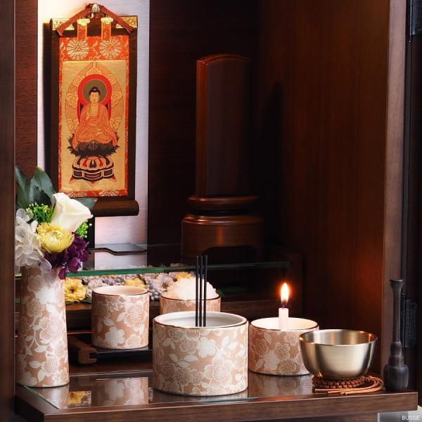 仏具 セット やわらぎ さくら 中サイズ 7点 /仏具セットミニ モダン 手元供養仏具 おしゃれ仏具 日本製 国産 陶器製 3.0寸 桜