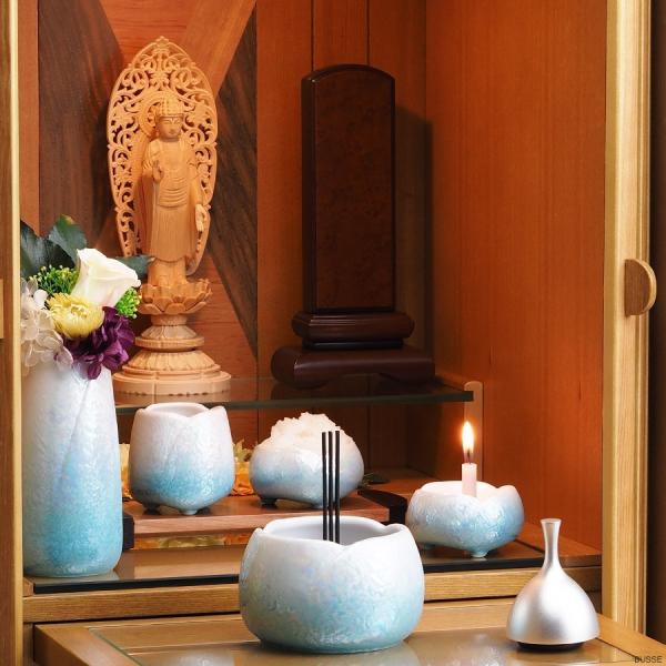仏具 セット やわらぎ ラスターブルー 中サイズ 5点 /仏具セット ミニ モダン 手元供養仏具 おしゃれ仏具 日本製 国産 陶器製 3.0寸