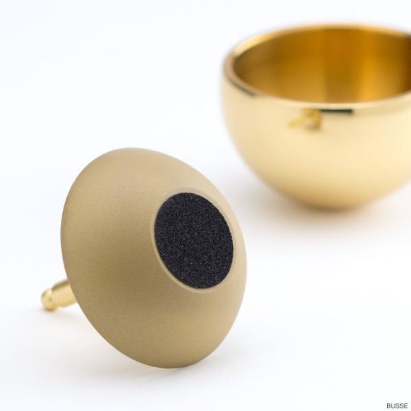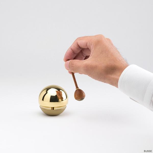 自立するリン棒で叩くと、上半分がゆらゆらと揺れながら、軽やかな音色を奏でます。その後、澄みきった柔らかい余韻が、ゆったりと減衰していきます。