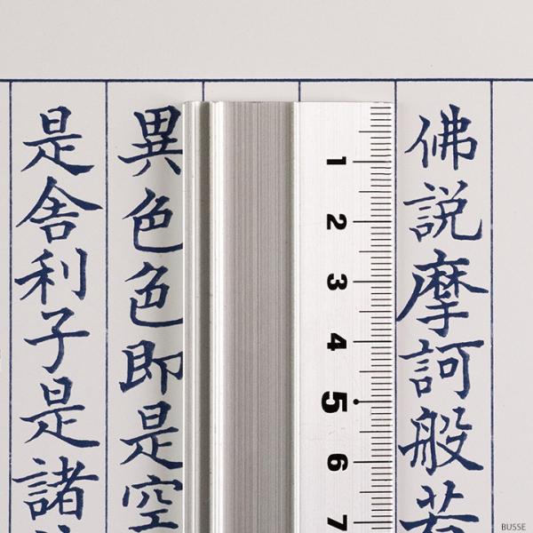 厚めの紙に印刷されたお手本が付いていますので、透かしながら文字をなぞることができます。1行に書かれた文字数が、お手本と表紙とは異なりますので、ご注意ください。A4判よりは大きく、B4判よりわずかに小さいです。罫線の幅は約1.6cmです。配送の際は段ボール箱にお入れして宅配便にてお届けします。