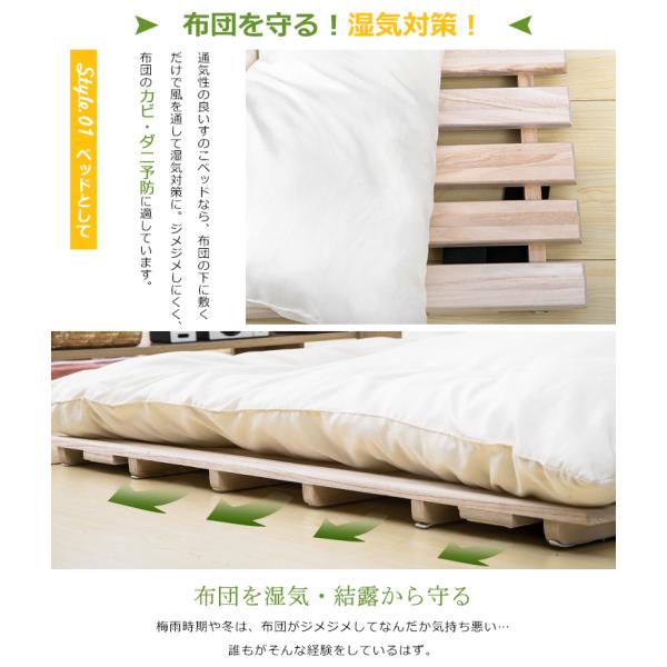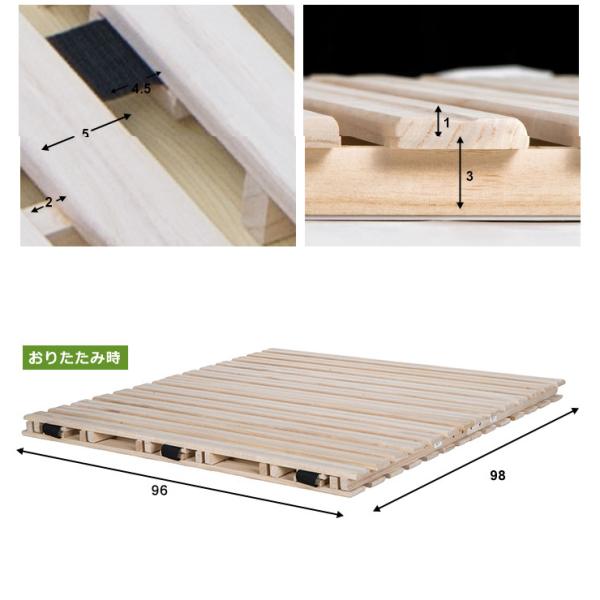 商品説明:桐製スノコのベッドなので布団やマットレスにこもる熱気や湿気を逃し、いつでも快適。コンパクトな二つ折りで収納や持ち運びもラクラク。