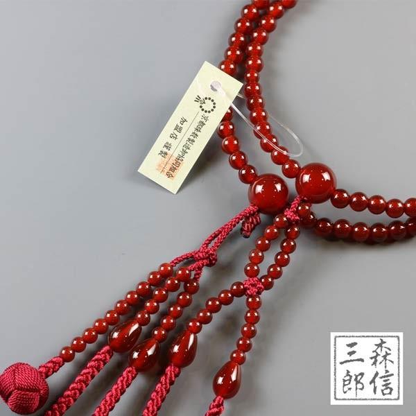 数珠 日蓮宗 女性用 二輪数珠 瑪瑙(アゲート) 8寸 正絹房 天然石数珠 赤メノウ 本式数珠 正式 京念珠 二重 念誦 婦人用 記念品 法事 法要 葬式 京都製 日本製