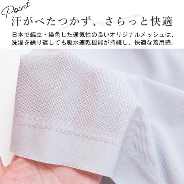 吸水速乾メッシュ素材により、吸水性は綿の約17倍・速乾性は綿の約3倍で通気性!