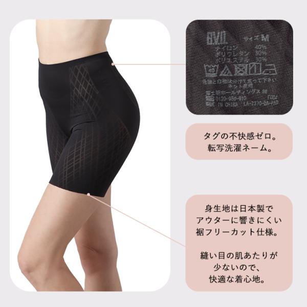 身生地が日本製のフリーカット素材に、着圧コントロール特殊加工の「Viscomajic?」加工で パワーコントロールをプラス。