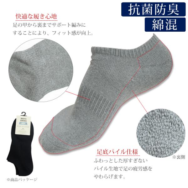 メンズ 靴下 抗菌防臭 スニーカーソックス パイル サポート編み カジュアル 綿混 くつした 男性 ショート デイリー ポイント利用 爆買