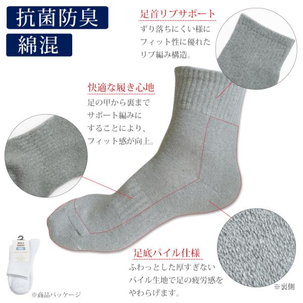 メンズ 靴下 抗菌防臭 ショート丈ソックス パイル サポート編み カジュアル 綿混 くつした 男性 デイリー ポイント利用 爆買