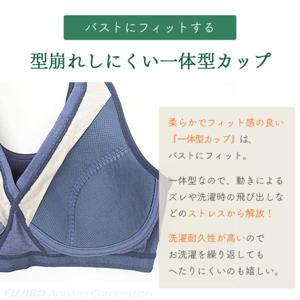 通気性・洗濯耐性・保形性の良いカップを使用しており、バストを優しく包み込みます。