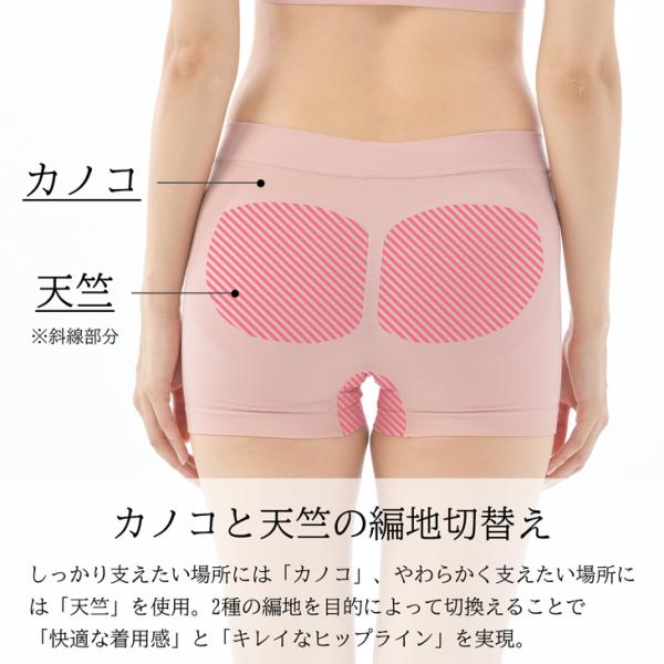 2種の編地を目的によって切換えることで「快適な着用感」と「キレイなヒップライン」を実現しました。