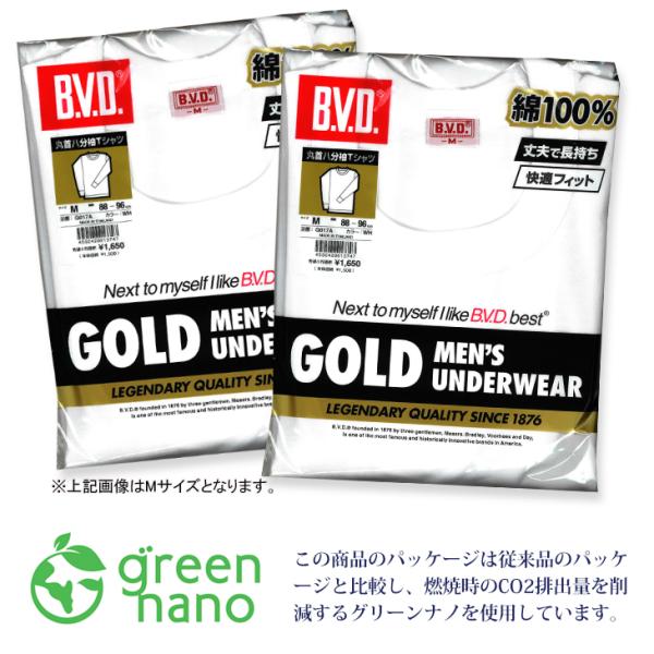 bvd BVD GOLD 8分袖 tシャツ 2枚セット 丸首 メンズ 肌着 綿100% インナー 下着 アンダーウェア ビーブィディー ポイント利用 爆買