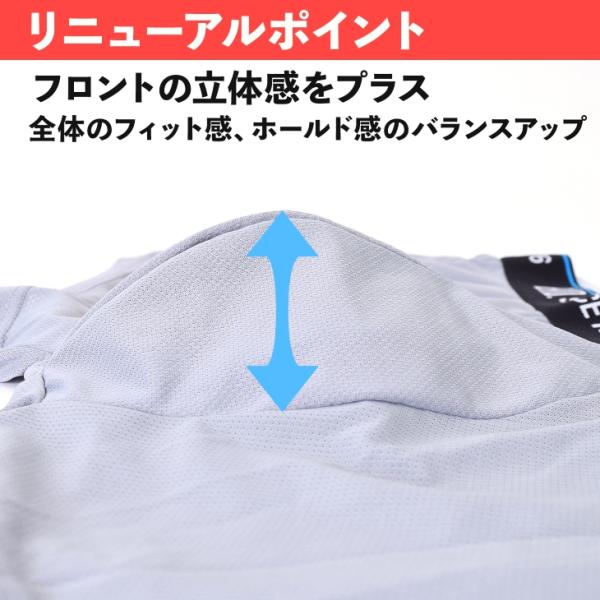 また、試験データを基にフロント部分の立体を大きくすることで全体のフィット感のバランスをアップさせました。