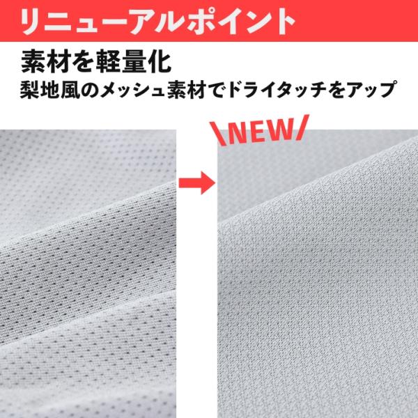 生地を梨地のようなメッシュ素材にしたことによりドライタッチ感が向上。