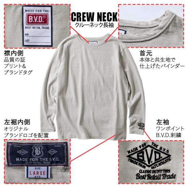 B.V.D. 日本製 ヘビーウエイト クルーネックロングスリーブTシャツ 綿100% 厚地 bvd ポイント利用 爆買