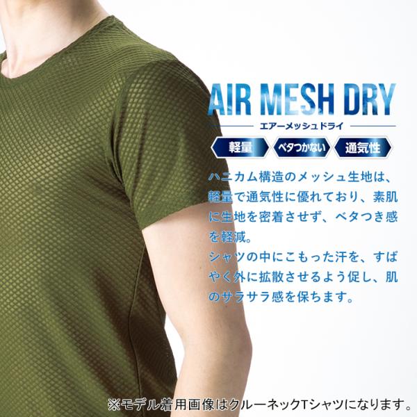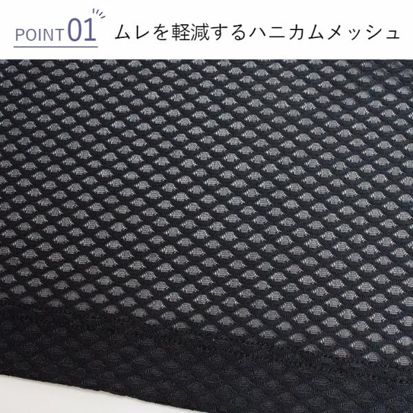 ハニカム構造のメッシュ生地は、軽量で通気性に優れており、素肌に生地を密着させず、ベタつき感を軽減。