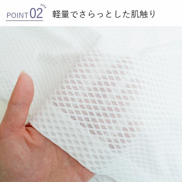 ハニカム構造のメッシュ生地は、軽量で通気性に優れており、素肌に生地を密着させず、ベタつき感を軽減。