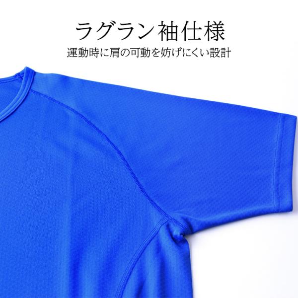 ハニカムメッシュ素材で通気性、吸水速乾性に優れており、汗をかいてもハニカム構造によって肌との接触面積が小さくなり、汗戻りしにくくベタつかずサラッとした着心地。