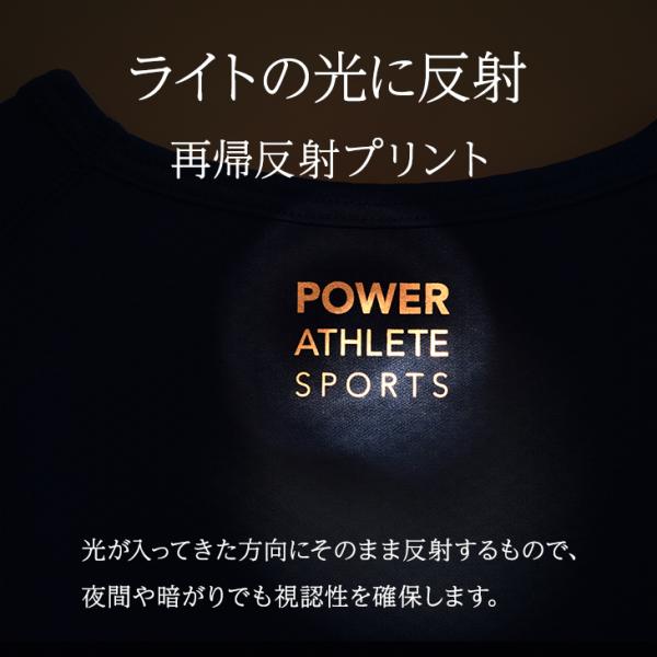 首の後ろと裾の左側に※再帰反射プリントを施しており、夜間や暗がりでも視認性を確保してくれます。