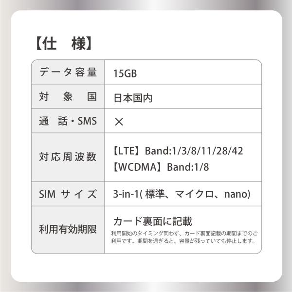 ●【15GBプラン】(15GBor利用有効期限を超すと停止)※カード裏記載の利用有効期限or15GBまで利用可能