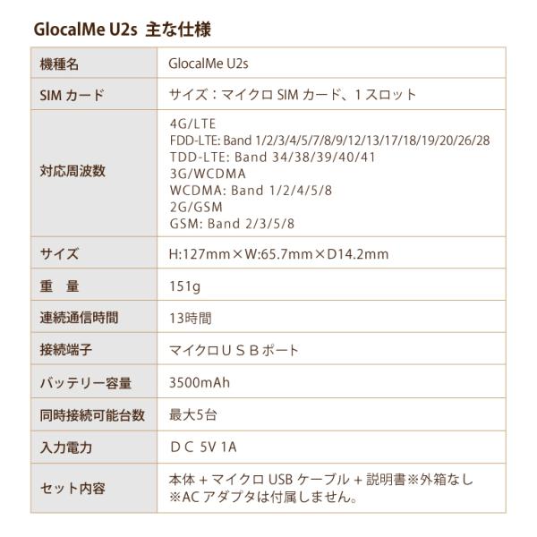 【中古未使用品】GlocalMe U2s SIMフリーモバイル Wi-Fiルーター(クラウド機能なし)3500mAh大容量バッテリー【送料無料】