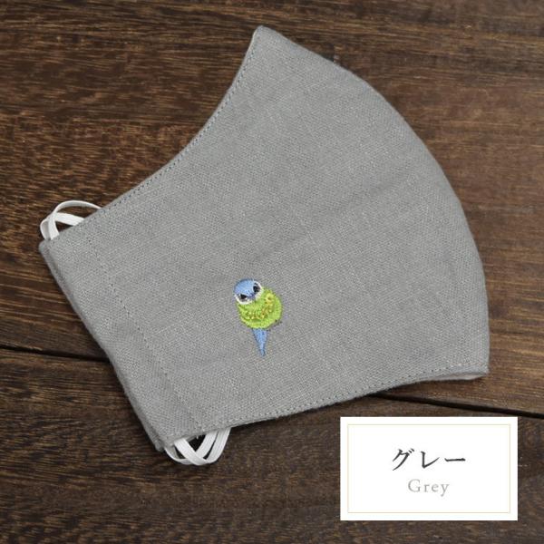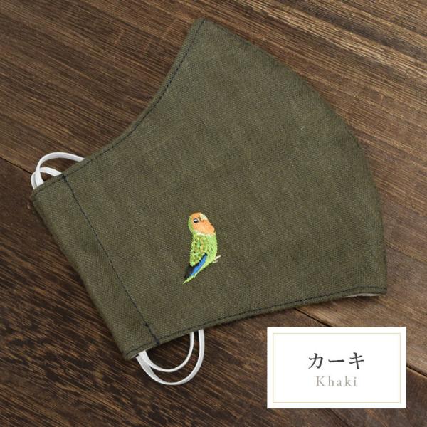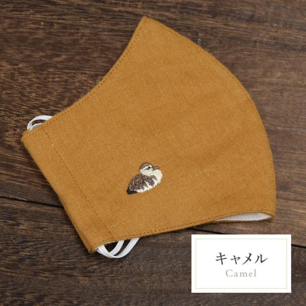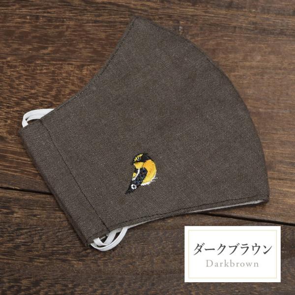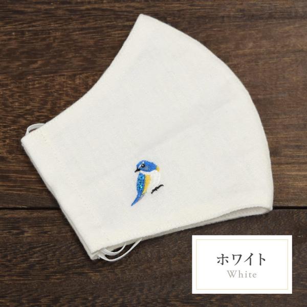 小鳥の刺繍がかわいい!日本製 起毛リネン布マスク