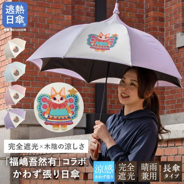日傘 レディース 長傘 かわず張り 逃熱日傘 完全遮光 100%遮光 一級遮光 遮熱 UVカット率99.9% 福嶋吾然有 イラスト 作家